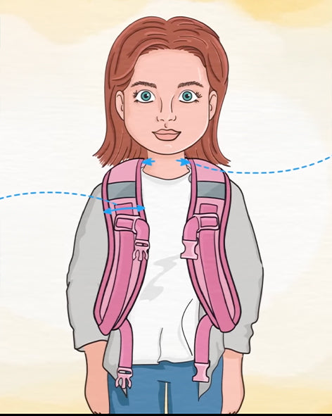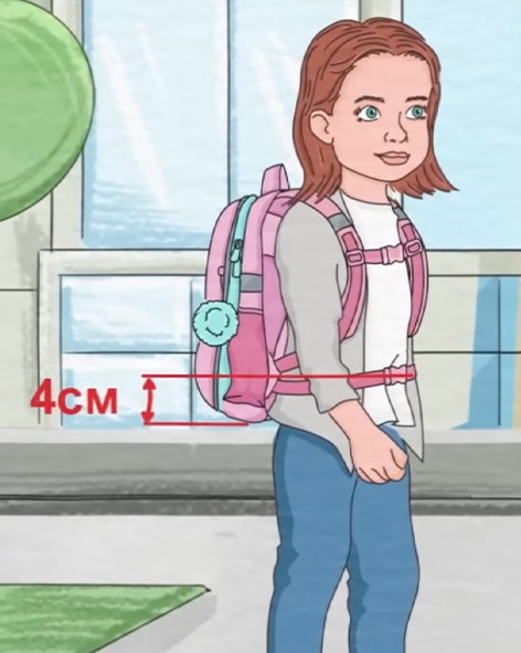 Через особливості фігури та різний зріст дітей неможливо створити рюкзак з універсальними параметрами для кожного. Тому під час примірки дотримуйтесь наступних правил: дно рюкзака має розміщуватися на 4 см нижче талії, а верхній край — на рівні плечей. Ідеально підігнати рюкзак по тілу учня допоможуть плечові ремені. Зверніть увагу на розмір виробу, який вказаний на етикетці. Він повинен відповідати параметрам росту дитини.